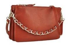 Skórzana listonoszka damska na ramię camel z łańcuszkiem - Barberini's 172-13