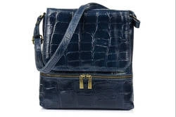 Skórzana listonoszka damska z klampą granatowa skóra croco Vera Pelle B69