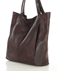 Duża skórzana torba damska worek shopper ciemnobrązowy - MARCO MAZZINI vs56c