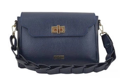 Skórzana listonoszka damska na ramię z plecionym paskiem granatowa - Barberini's 981-4