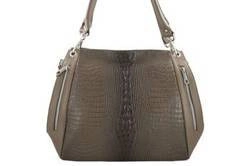 Skórzana shopperka na ramię miejska beżowa croco - Barberini's 858-9