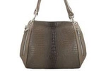 Skórzana damska shopperka worek skóra croco zamszowa beżowa - Barberini's 375/7-9