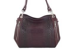 Skórzana shopperka na ramię miejska bordowa croco - Barberini's 858-5