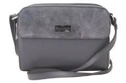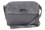 Skórzana listonoszka damska z zamszową klapką ciemno szara - Barberini's 868-28