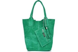 Skórzana torebka damska zamszowa shopperka zielona A4 - Vera Pelle L82
