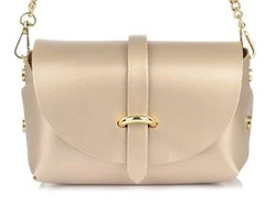 Skórzana listonoszka damska z klapką torebka beżowa - Vera Pelle X45