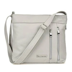 Skórzana mała listonoszka damska na ramię jasno szara - Beltimore T75