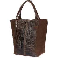 Skórzana torebka damska z saszetką shopperka worek ciemnobrązowa A4 - Vera Pelle L94