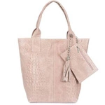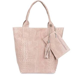 Skórzana torebka damska zamszowa listonoszka croco musztardowa - Beltimore W13