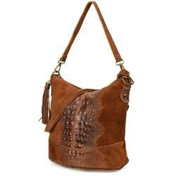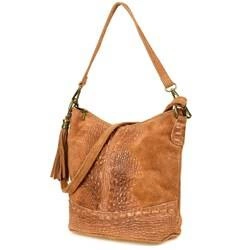 Skórzana torebka damska na ramię zamszowa croco camel Beltimore W13