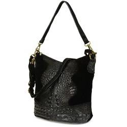 Skórzana torebka damska na ramię zamszowa croco czarna Beltimore W13