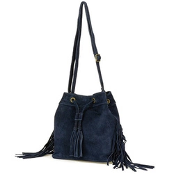 Skórzana torebka damska z frędzlami zamszowa granatowa worek - W03