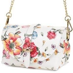 Skórzana mała listonoszka wizytowa torebka na łańcuszku biała w kwiatki Vera Pelle P45