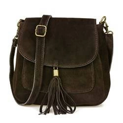 Skórzana torebka damska worek zamszowy ciemnobrązowy Vera Pelle U35