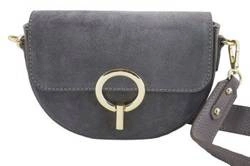 Skórzana listonoszka na ramię zamszowa ciemnoszara - Barberini's 710-28