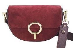 Skórzana mała listonoszka na ramię zamszowa bordowa - Barberini's 710-5