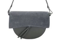 Skórzana listonoszka damska z zamszową klapką ciemno szara - Barberini's 868-28