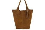 Skórzany shopper bag damski zamszowowy camel - Barberini's 375/8-12