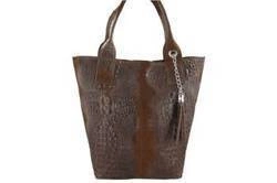 Skórzana damska torba shopper bag brązowy worek zamszowy croco - Barberini's 375/7-6