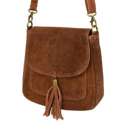 Skórzana listonoszka z klapką camel zamszowa Vera Pelle B67