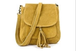 Skórzana listonoszka z frędzlami zamszowa musztardowa Vera Pelle X39