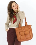 Torebka damska worek camel brąz shopperka skórzana - MARCO MAZZINI v246a
