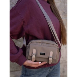 Mała listonoszka damska torebka z nylonu w beżowym kolorze - Peterson CTY-07