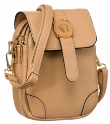 Skórzana mała listonoszka damska torebka beżowa - Rovicky R-TSL-06-CPDM