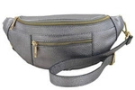 Skórzana nerka damska saszetka ciemno srebrna metalizowana - Barberini's 935-46