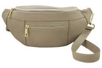 Skórzana nerka męska saszetka biodrówka na pas regulowana nubuk beżowa - F49