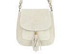Skórzana listonoszka damska zamszowa z klapką ecru - Vera Pelle X40
