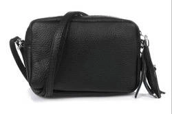 Skórzana mała listonoszka damska czarna z frędzlem Vera Pelle C74