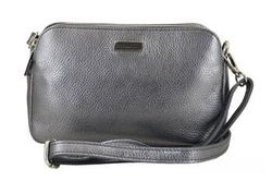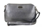 Skórzana listnoszka damska torebka metalizowana srebrna ciemna - Barberini's 978-46
