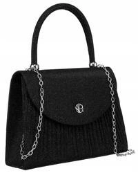 Elegancka brokatowa kopertówka damska z łańcuszkiem czarna - Rovicky R-XS004