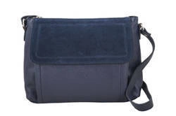 Skórzana torebka damska na ramię z zamszową klapką granatowa - Barberini's 962-4