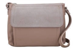 Skórzana torebka damska na ramię z zamszową klapką beżowa - Barberini's 962-2