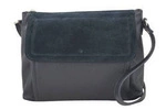 Skórzana torebka damska na ramię z zamszową klapką czarna - Barberini's 962-1