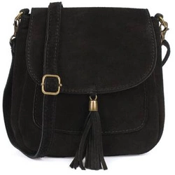 Skórzana listonoszka damska torebka zamszowa z klapą taupe - Vera Pelle B67