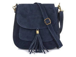 Chabrowa Mała Damska Listonoszka Z Frędzlem Przewieszka Z Włoskiej Naturalnej Skóry Licowej P14 : Kolory - Niebieski