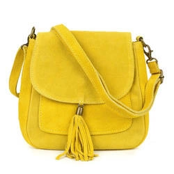 Skórzana listonoszka damska zamszowa z klapą żółta Vera Pelle X40