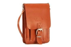 Mała skórzna miejska torba na ramię saszetka koniak - Vooc P19