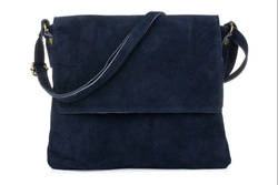 Skórzana listonoszka z klapką granatowa zamszowa Vera Pelle B67