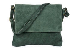 Skórzana listonoszka z klapką zielona zamszowa Vera Pelle B67