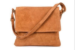 Skórzana listonoszka z klapką camel zamszowa Vera Pelle B67