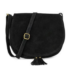 Skórzana listonoszka na ramię zamszowa podkówka czarna Vera Pelle B66