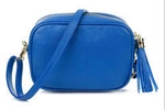 Chabrowa Mała Damska Listonoszka Z Frędzlem Przewieszka Z Włoskiej Naturalnej Skóry Licowej P14 : Kolory - Niebieski
