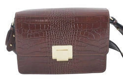 Skórzana listonoszka damska na ramię brązowa croco - Barberini's 747-6