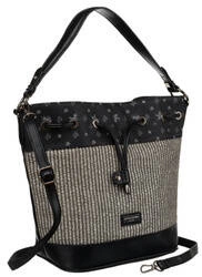 Stylowa czarna torebka damska worek z ozdobnym panelem - David Jones 6875-2