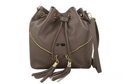 Skórzana mała torebka damska worek ciemnobeżowa - Barberini's 975-9