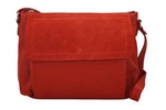 Skórzana torebka damska na ramię z zamszową klapką czerwona - Barberini's 962-7